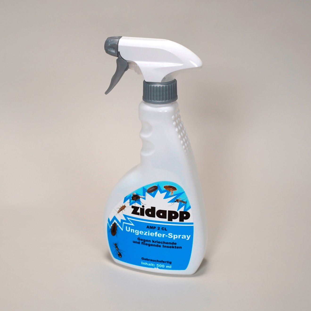 Das Zidapp Ungeziefer Spray ist ein geruchsarmes Universalpräparat auf Wasserbasis zur Bekämpung von kriechenden und fliegenden Insekten für den Innen- und Außenbereich.
