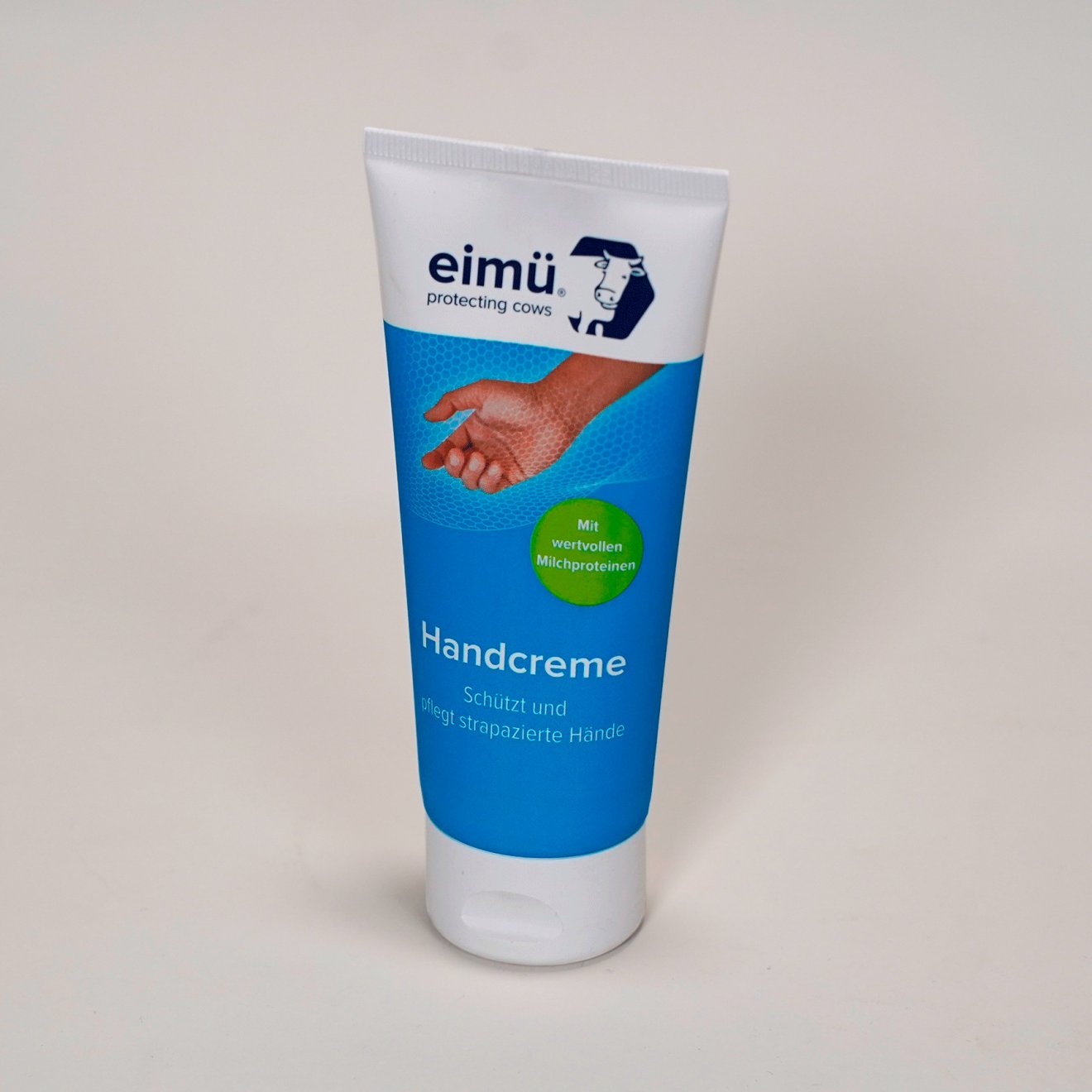 Die eimü Handcreme mit wertvollen Milchproteinen versorgt empfindliche und sensible Hände mit intensiver Feuchtigkeit und schützt sie zuverlässig vor dem Austrocknen. Dank der pH-hautneutralen Formulierung wird die Haut sanft gepflegt, während trockene Hautstellen und Hautirritationen effektiv vorgebeugt wird.