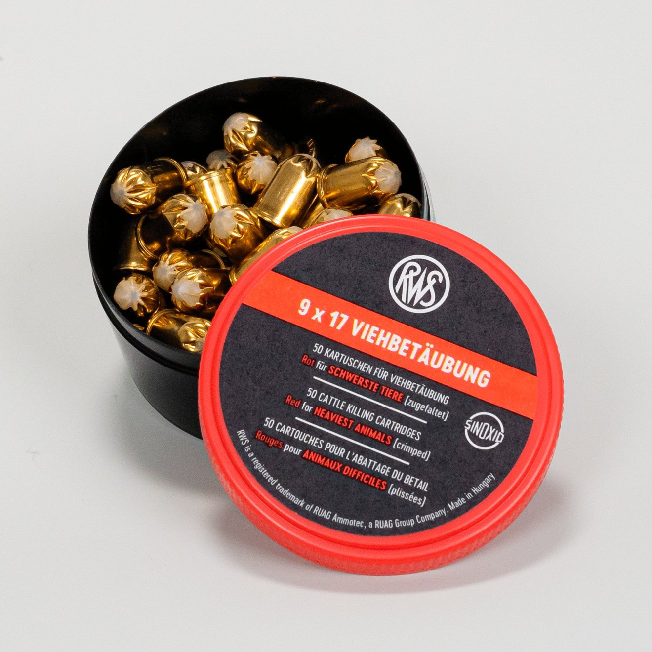 Die roten Patronen werden für die Betäubung von Kühen, Ochsen, Stieren (über 600 kg), Ebern und Sauen (über 200 kg) eingesetzt.