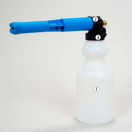 Mittels der Schaumpistole können Wasser-Seifen-Gemische versprüht und eine Schaumschicht erzeugt werden. Die Reinigungs- und Desinfektionsmittel werden durch eine Venturidüse angesogen und bilden den Schaum. Die Schaumlanze kann vor alle Hochdruckreinigern genutzt werden, welche eine Durchflussmenge von 25 l/min haben.