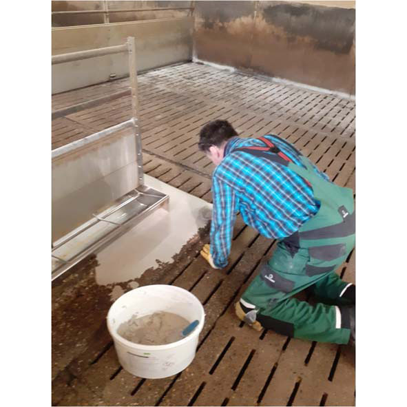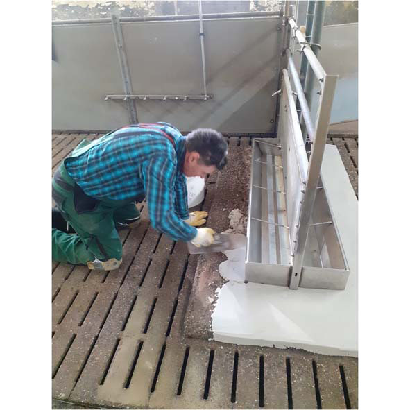 Saniermörtel AC 192 ist ein naturfarbener, fertig vorgemischter, lösemittelfreier 2-Komponenten Epoxid-Saniermörtel. Der Saniermörtel ist zum Reprofilieren und Sanieren von zementgebundenen Untergründen im Agrarbereich z.B. Lagerhallen, Werks- u. Produktionshallen, auf Liegeflächen, sowie bei kleinflächigen Fahrsiloboden- u. Wandsanierungen geeignet.