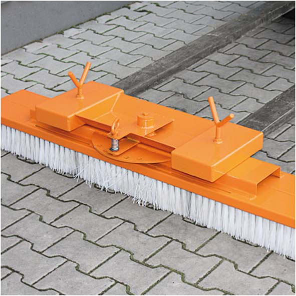 Der Kehrbesen für Zinken ist ein starrer Besen, der zur groben Reinigung von Flächen von Unrat, Laub oder Schnee Verwendung findet. Er wird an der Palettengabel von Stapler, Radlader oder Frontlader angebaut und durch Flügelmuttern auf den Einfahrtaschen gegen Abrutschen gesichert.