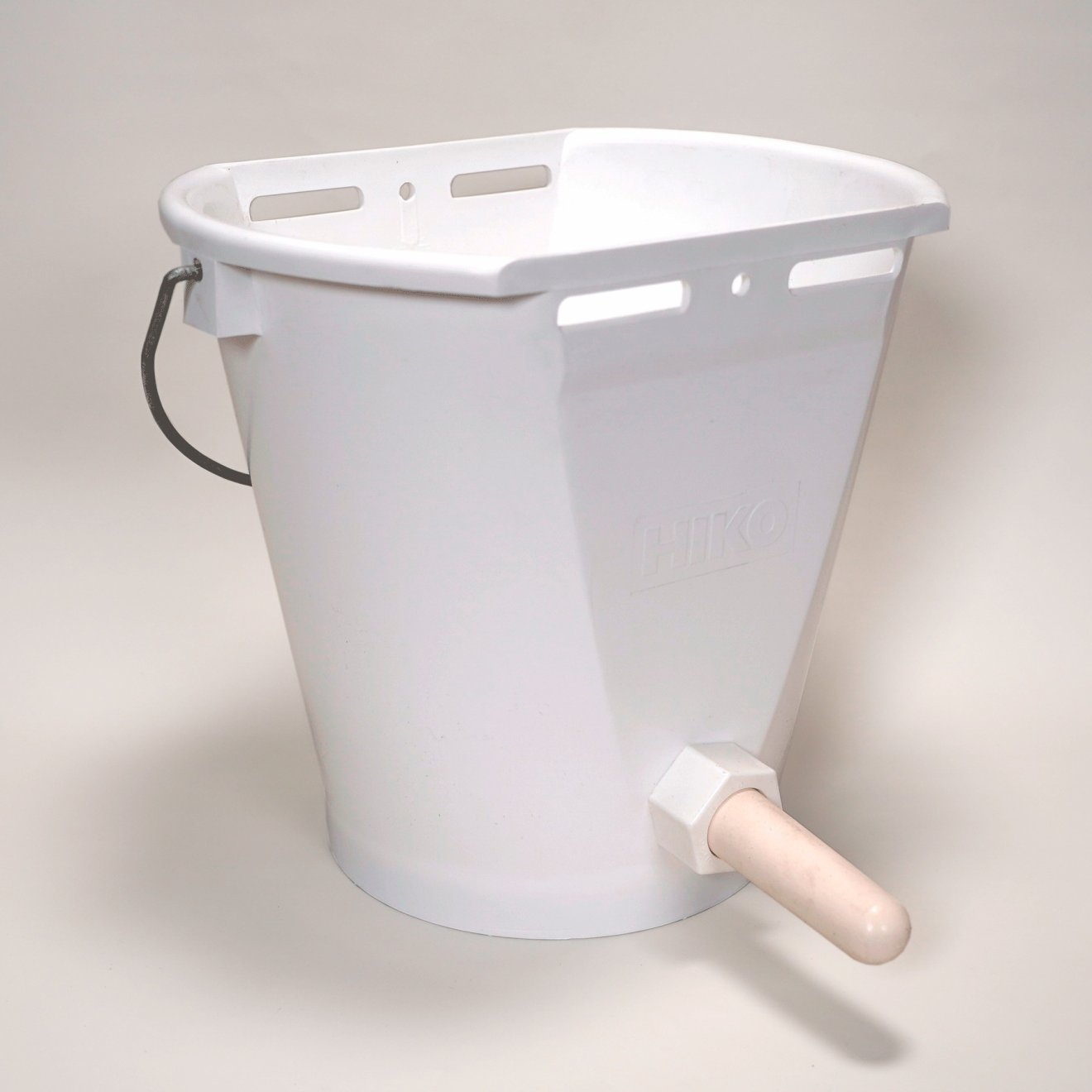 Der Nuckeleimer ist leicht zu reinigen. Durch eine eingeprägte Füllskala kann die angebotene und aufgenommene Milchmenge immer im Blick behalten werden. Der Nuckeleimer ist säurebeständig, lebensmittelecht und robust. Durch einen Metallbügel kann der Nuckeleimer leicht transportiert werden. Im Lieferumfang sind ein Nuckel und ein Ventil enthalten.