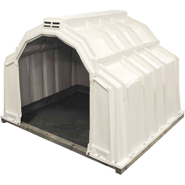 Die Kälber können in der Hütte bis zu einem Alter von 6 Monaten gehalten werden. Die Kälberhütte besteht aus witterungsbeständigem Polyethylen und wird auf einem langlebigen Hartholzrahmen montiert.