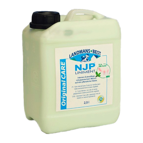 Original NJP Liniment unterstützt bei hoher Belastung die natürliche Widerstandskraft strapazierter Euter und schützt diese langanhaltend. Außerdem trägt die milde Formel mit pflegenden Substanzen dazu bei, dass die Euterhaut geschmeidig bleibt. Bei dem Euterpflegemittel Original NJP Liniment muss keine Wartezeit eingehalten werden. Es ist mit dem DLG-Gütesiegel ausgezeichnet.
