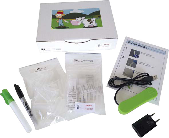 Das Starter-Set besteht aus einem Miniinkubator, 10 Milchproberöhrchen, 10 Einwegpipetten und 10 Teststreifen. Die Anwendung den Milchtests ist einfach möglich. Zunächst wird eine Milchprobe entnommen und auf einen Teststreifen gegeben. Dieser wird dann im Miniinkubator inkubiert. Nach einer vorgegebenen Inkubationszeit kann der Teststreifen einfach abgelesen werden. Verfärbungen auf dem Teststreifen geben Aufschluss darüber, ob Bakterienwachstum vorliegt und wenn ja, ob gramnegative oder grampositive Bakterien das Euter infiziert haben. Hierdurch kann dann die weitere Behandlung der Kuh schnell festgelegt werden.